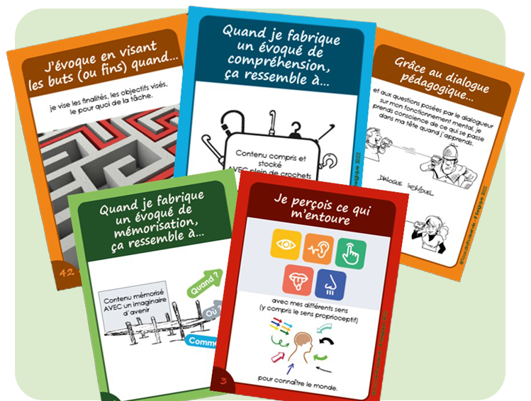 À travers des images et des mots soigneusement choisis, ce jeu invite à la réflexion, à l’échange et à la mise en sens des notions clés de l’« apprendre à apprendre ».